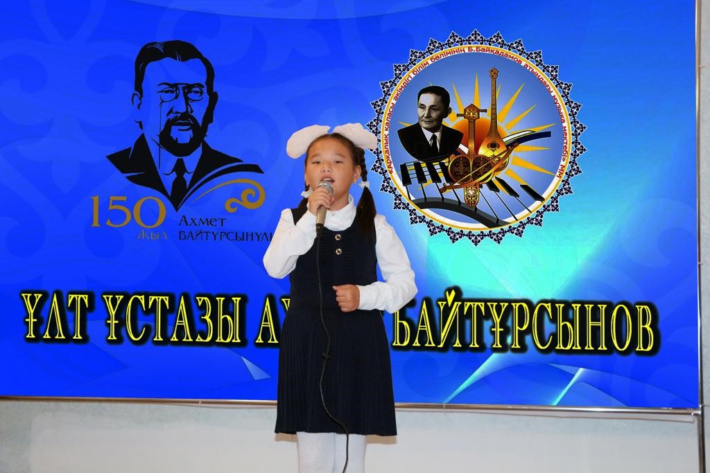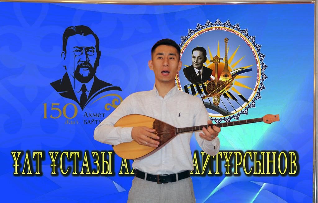 Ахмет Байтұрсынұлы – қазақ халқының бұлт артынан шығатын ашық аспаны мен жарық күні үшін күрескен тұлғалардың бірі де бірегейі, қазақ тіл білімі мен әдебиеттану ғылымдарының негізін салушы ғалым, қазақтың ақыны, түркітанушы, публицист, педагог, аудармашы, қоғам қайраткері. Қазақ үшін «Ұлт ұстазы» атанып кеткен ұлы тұлға. Ұстаздың кең көлемде тойланып жатқан 150 жылдығынан Б.Байқадамов атындағы балалар музыка мектебі де қалыс қалмады. Бүгін домбыра бөлімінің жетекшісі Жусупова Балым Сейтхановнаның ұйымдастыруымен Ахмет шығармашылығы мен күреске толы өмір жолына арналған іс-шара болып өтті. Іс- шараның шымылдығы Ахаңның ұлт болашағы үшін күресіп, халықтың көкірек көзін ояту үшін жасалған игі істері жүзеге аспай жүргенде туындаған "Арман" күйімен ашылды. Көрермендерге Жангелдин ауданы Торғай ауылында А.Байтұрсынұлына арнап ашылған мұражайдан бейнематериалдар көрсетілді. Мектебіміздің шәкірттері А.Байтұрсынұлының шығармаларын жатқа оқып, ағартушымыздың "Екі жирен" шығармасын қобыз аспабының мұғалімдері Тулегенова Жадыра Аркабаевна мен Кабылова Кенжегул Сайлаубаевна қобыз үнімен жеткізсе, домбыра аспабының мұғалімі Қапан Олжас Мүшелбайұлы домбырамен әуелете, нақышына келтіре шырқады. Аталған іс-шараның соңында "Ұлтымның ұлы ұстазы" әні қосыла шырқалып, аяқталды.